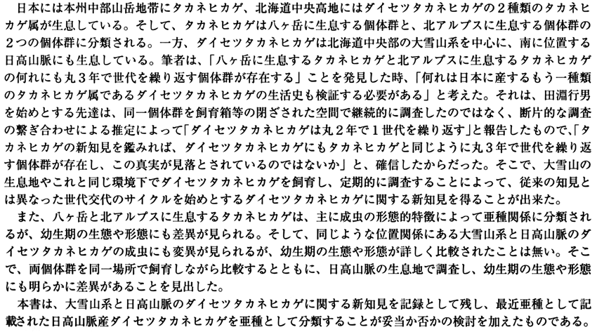 ダイタカ物語 -大雪山と日高山脈にダイセツタカネヒカゲの生態を追って-