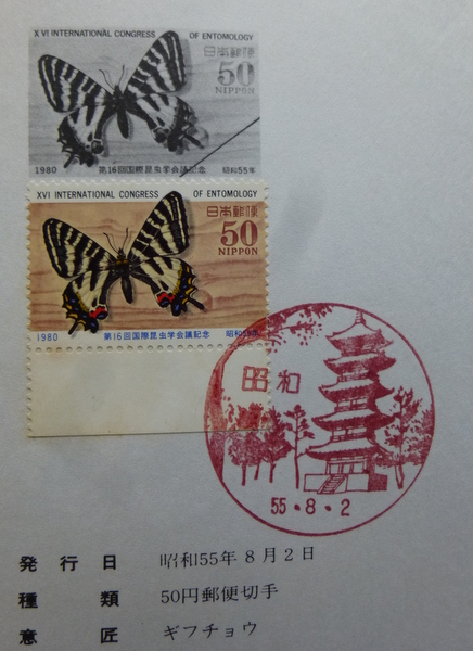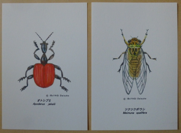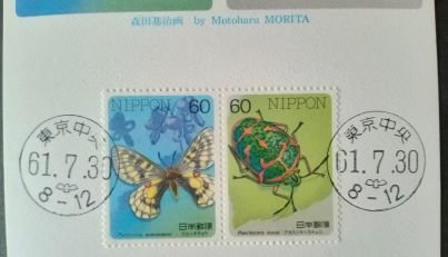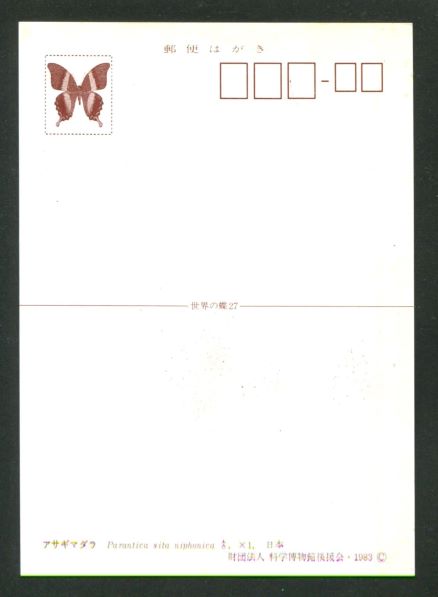 ※使用されているポストカードは「国立科学博物館後援会」販売の「世界の蝶」「世界の甲虫」シリーズです(1981-1983年発行、郵便番号欄:5桁)