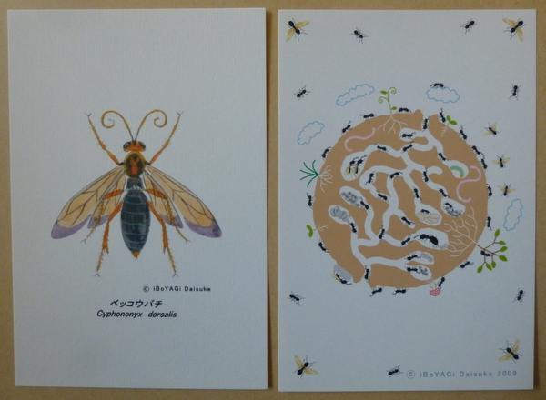 ※「クサアリ」は小さな消しゴムハンコを押してアリの行列を表現していますので、1枚ずつ微妙な違いがございます。