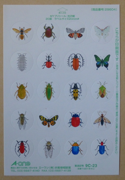 ベニシタバ、オオミズアオ、オトシブミ、ヤマトタマムシなど20種の昆虫のミニシールです