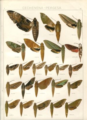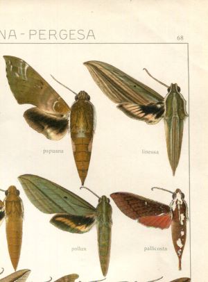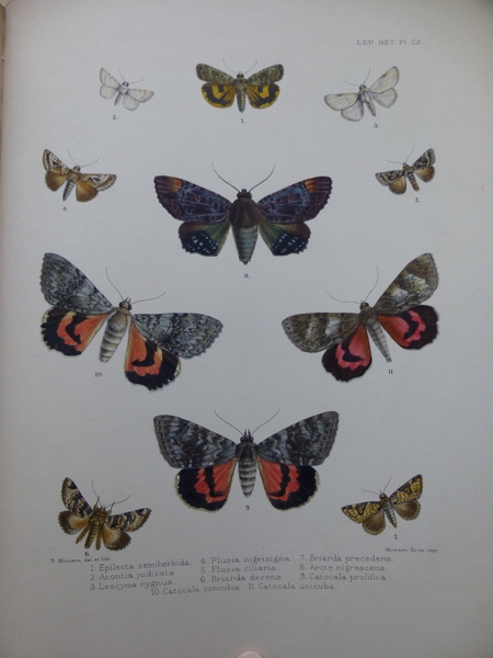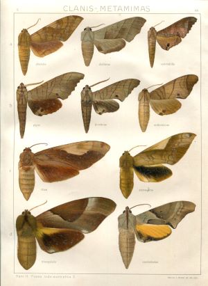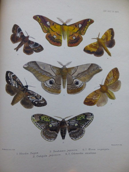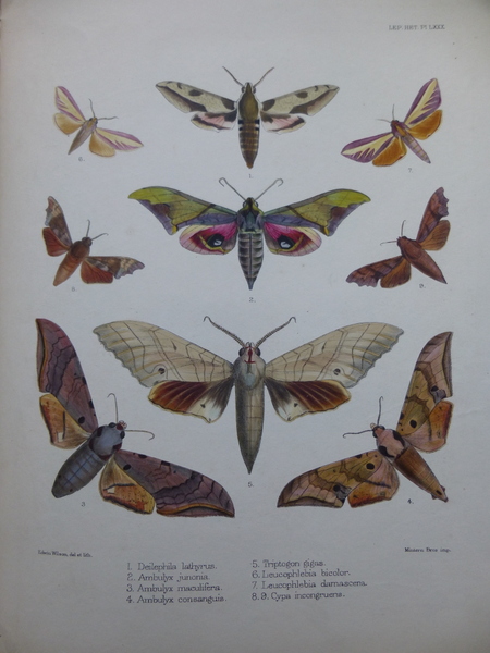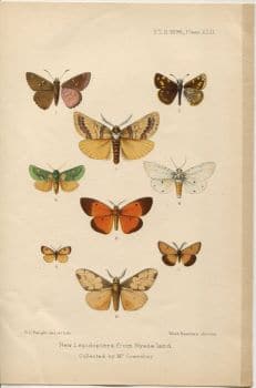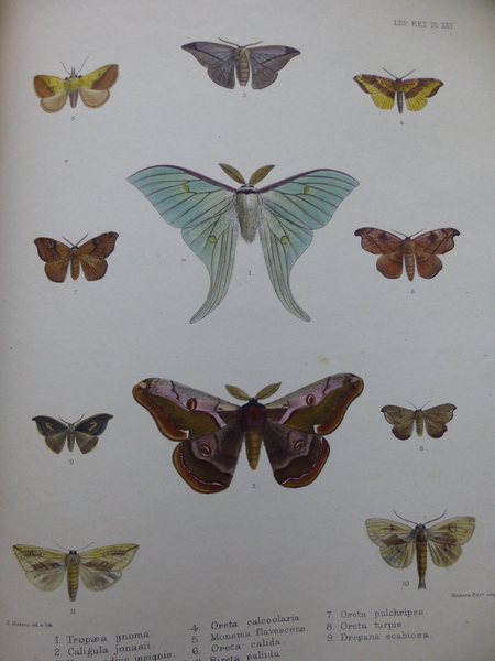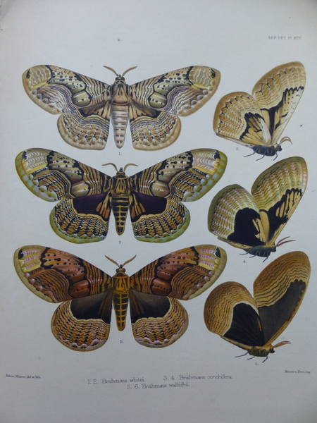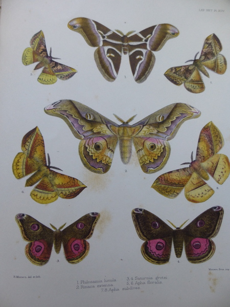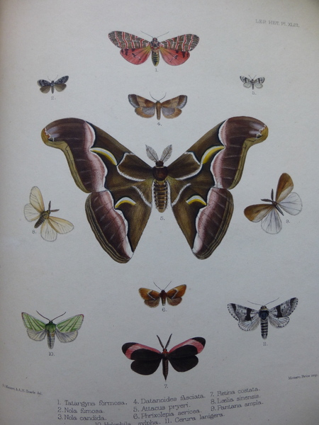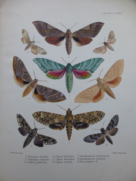 8.ニヤサランド(イギリス中央アフリカ保護領)産蛾類(1896):3,500円(送料別) ※リトグラフ原画・制作:E.C.Knight、リトグラフ印刷工房:West