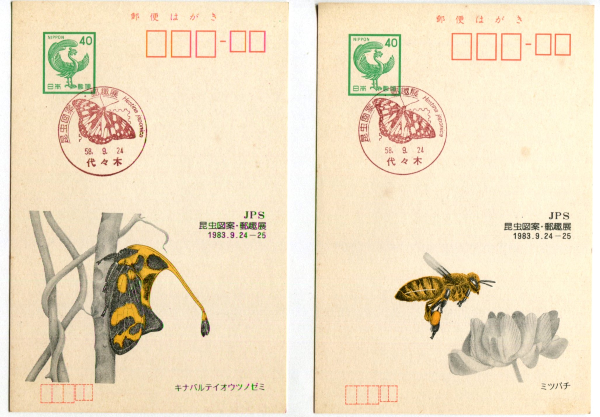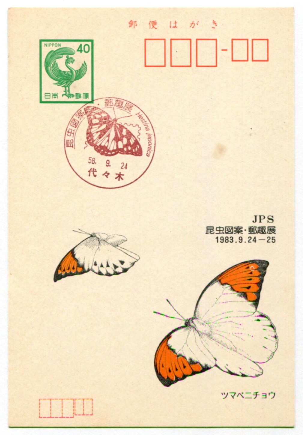 JPS昆虫図案・郵趣展(1983年9月24・25日)記念 絵入り官製ハガキ ※記念小型印の押印済み