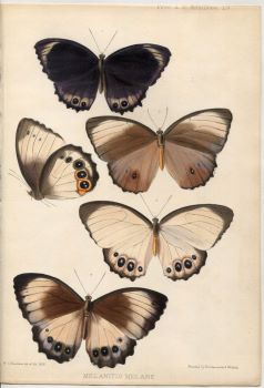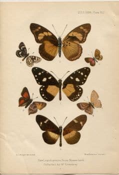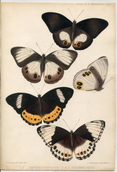 4.ベニスカシジャノメ、ルリモンスカシジャノメ 他(1866):4,000円(送料別) ※リトグラフ原画・制作:A.G.Butler、リトグラフ印刷工房:M.&N.Hanhart