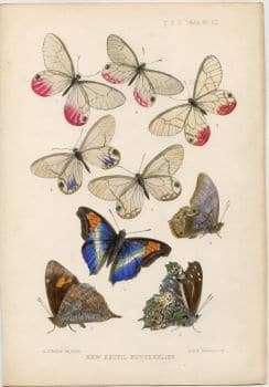 1.ウォレス氏コレクションの数種の蝶について(1858)2枚組:4,500円(送料別) ※リトグラフ原画・制作:W.C.Hewitson、リトグラフ印刷工房:Hullmandel&Walton