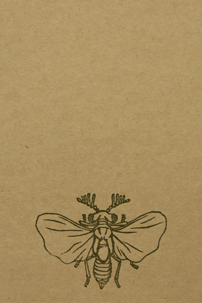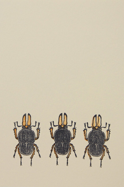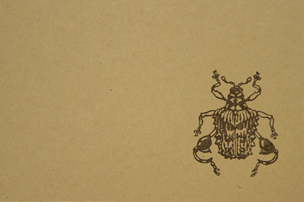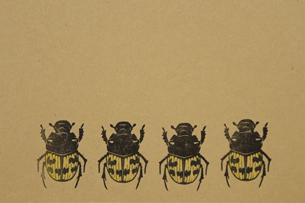 昆虫の特徴をしっかり捉えつつ、消しゴム版画独特の、温かみのある可愛らしい出来栄えです(当店ロゴマークもデザインしていただきました)。
