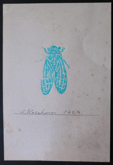 ・セミA 「S.Kasahara 1989」とサイン入り、左上端角に少虫食い跡、全体に汚れあり、41円官製ハガキを使用:売り切れになりました