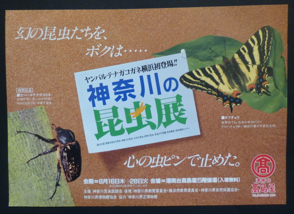 神奈川の昆虫展-ヤンバルテナガコガネ横浜初登場-(8/16-8/28)ポスター ※同デザインのB5サイズちらし1枚付き