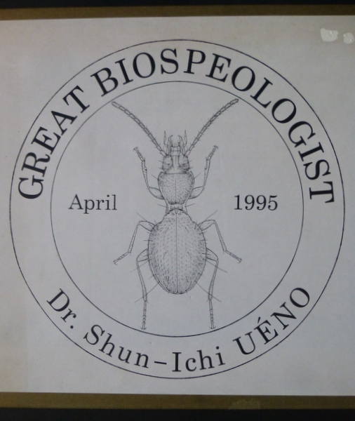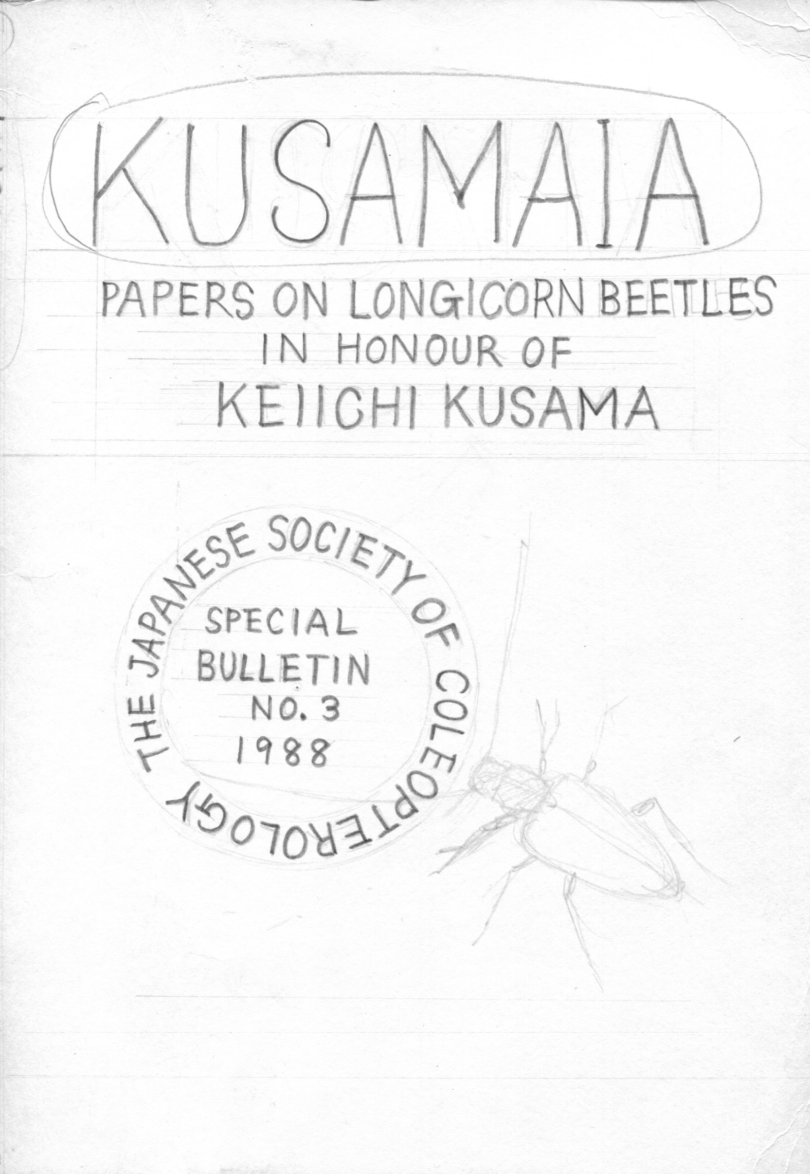 祝賀会参加者に配布された記念論文集「Beetles and Nature」表紙・扉絵、記念Tシャツと同図案の原画を拡大コピーし、ベニヤ板ボードに貼り付けたものです。少汚れ・焼け、修正液(ホワイト)少使用があります。