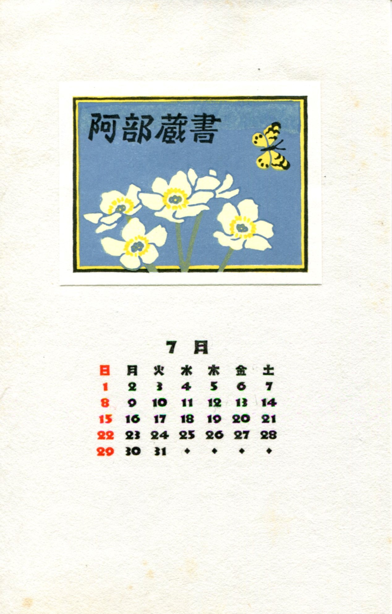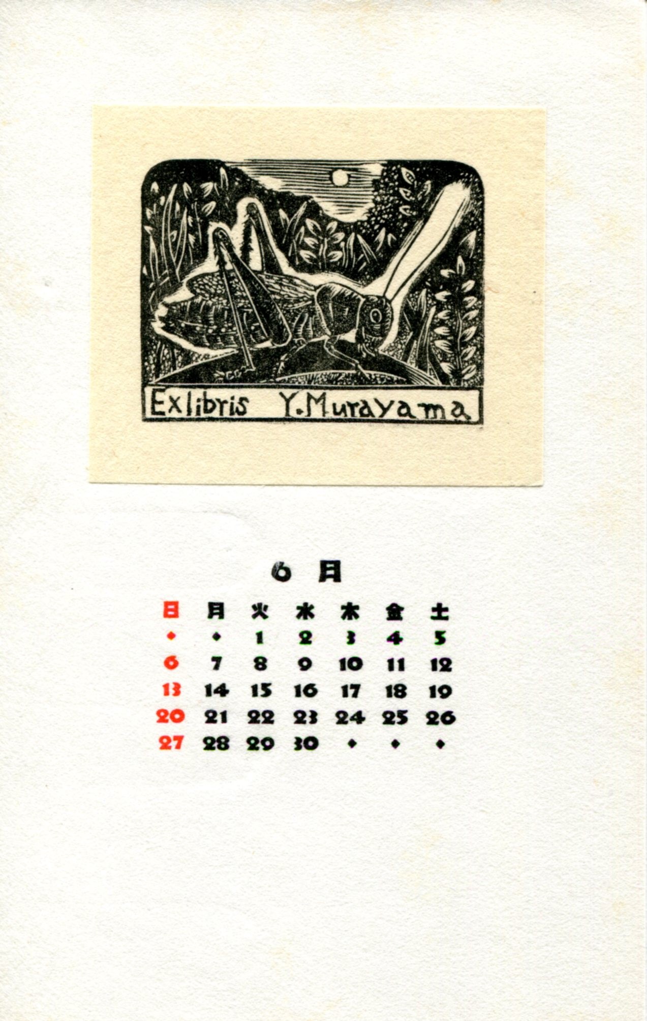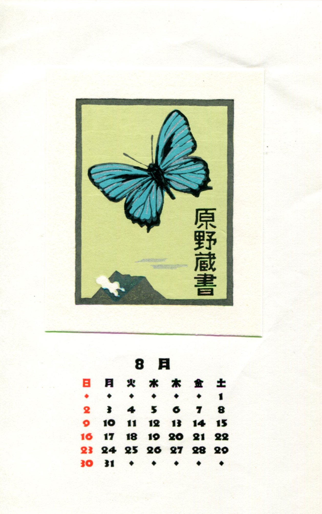 ※蔵書票はカレンダー台紙(和紙製)に軽く糊留めされています(剥がして蔵書票のみ保存できます)