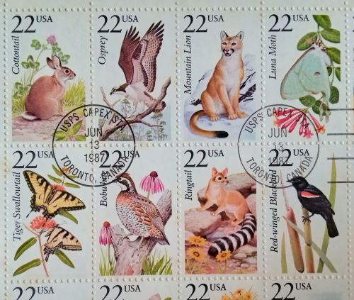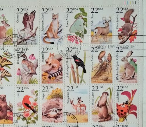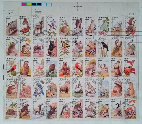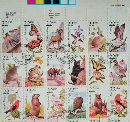 ・北アメリカの野生動物 50種連刷シート(1987年6月13日発行)